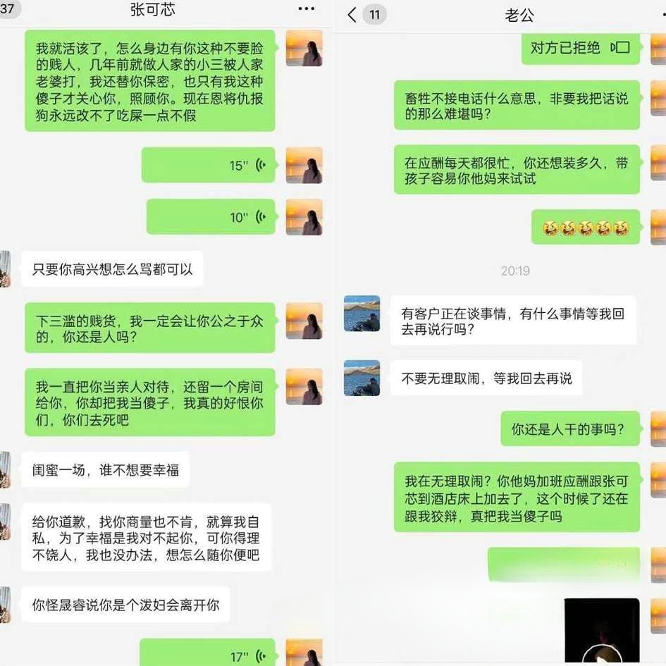 多年夫妻抵不过一夜情 老公出轨自己闺蜜【张可芯】聊天记录 出轨视频被原配曝光