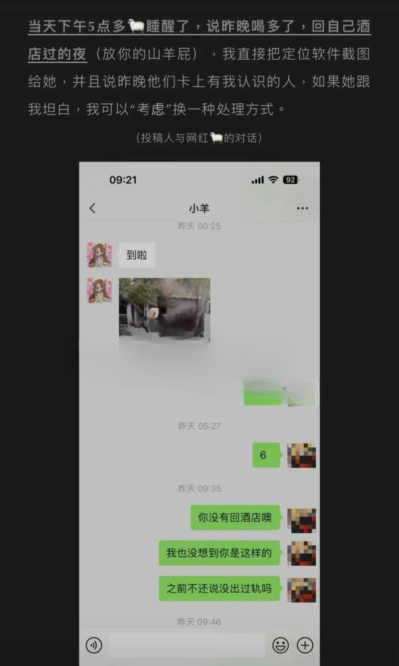 童锦程爆料称自己刚认识小羊的时候,她就是一个 3000 元一台的小姐,是我把她捧成如今的样子,结果她根本不懂得珍惜!